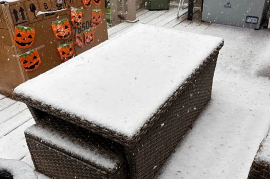 Northeastern parts of Saskatchewan were under a snowfall warning on Monday, with total amounts of 15 to 25 cm expected, while the white stuff also fell elsewhere in the province over Thanksgiving.