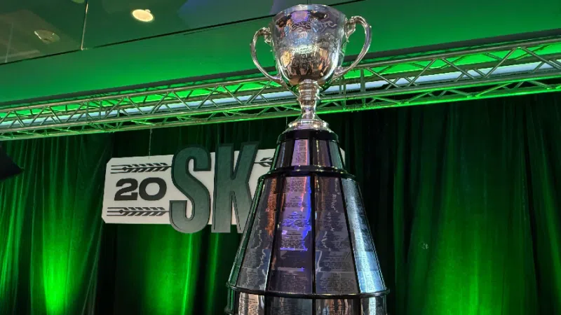Roughriders hoist the Grey Cup at Mosaic in front of hundreds of fans