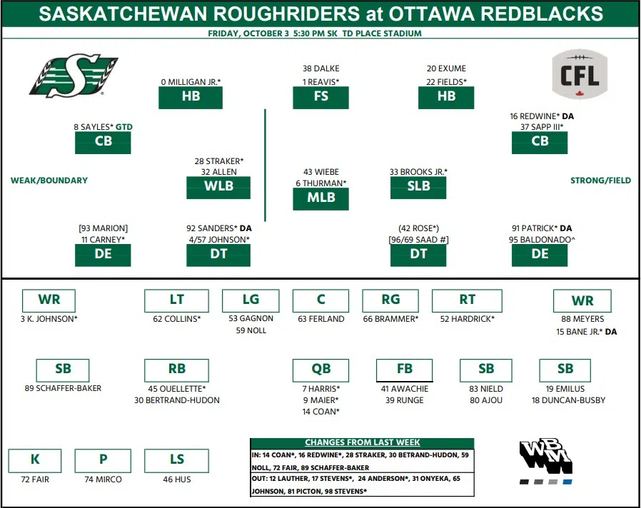 He will suit up for a second straight game on Friday as the Riders take on the Redblacks in Ottawa. Kickoff for the game is set for 5:30 p.m. The Green Zone‘s pregame show begins at 3:30 p.m.