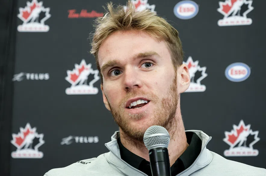 Connor McDavid speaks to the media at Hockey Canada’s National Teams orientation camp in Calgary, Wednesday, Aug. 27, 2025. THE CANADIAN PRESS/Jeff McIntosh