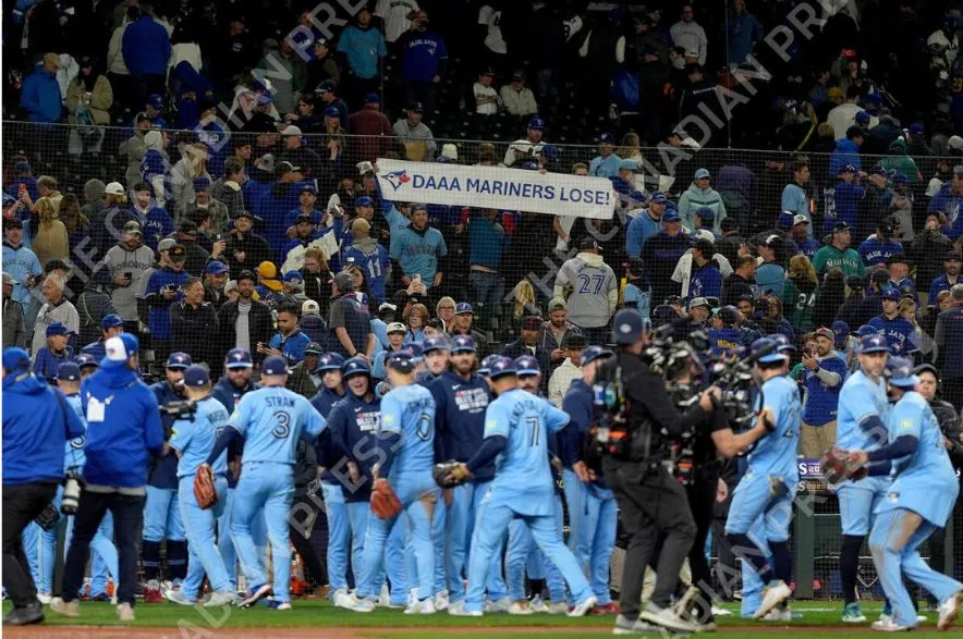 Toronto hit five home runs in a resounding 13-4 win over the Seattle Mariners on Wednesday night to get on the board in the best-of-seven series.