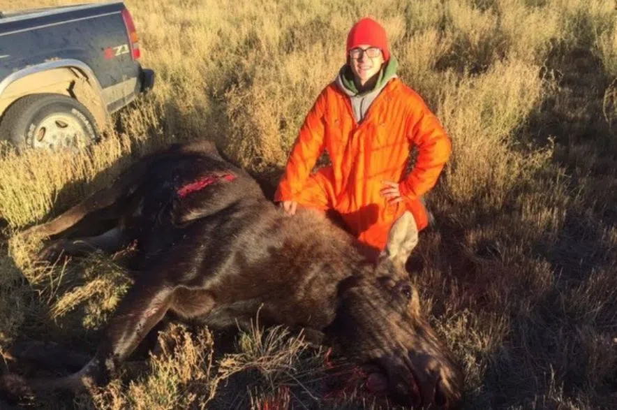 Hunter Zachary Schlageter poses with a moose taken in southern Saskatchewan. (Zachary Schlagete/submitted)