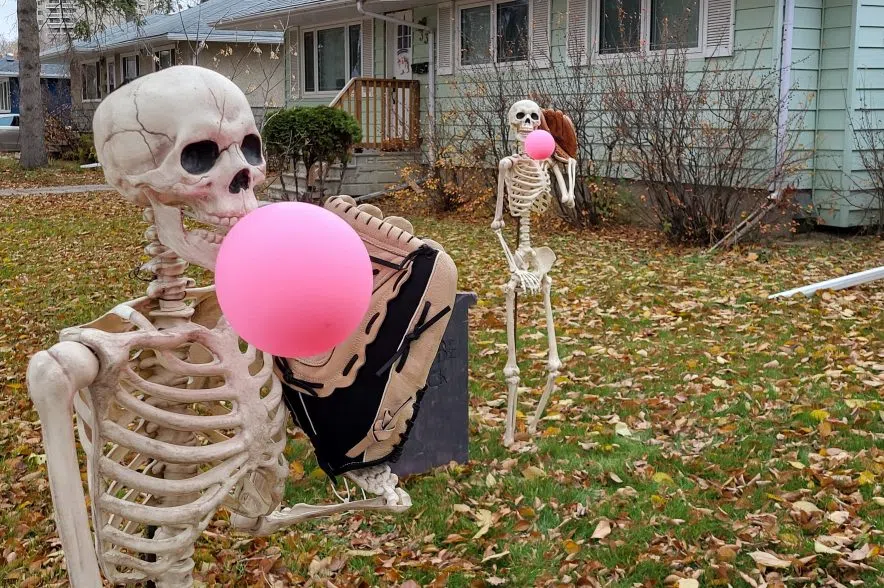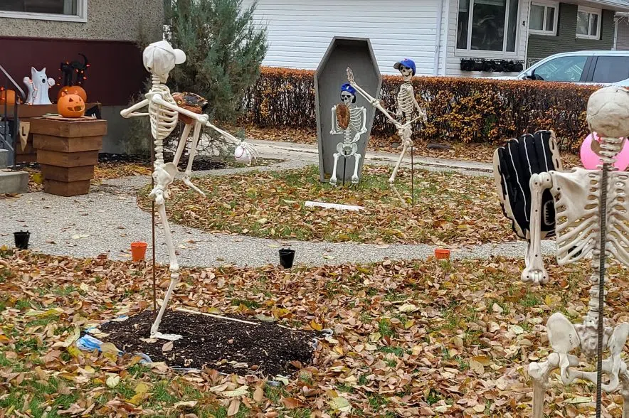 Last year, Dmyterko said her family went with a Saskatchewan Roughrider theme and had a tailgate party. In past years, they’ve also had the skeletons posing as competitors in winter sports in honour of the Winter Olympics.