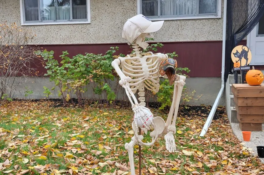 Last year, Dmyterko said her family went with a Saskatchewan Roughrider theme and had a tailgate party. In past years, they’ve also had the skeletons posing as competitors in winter sports in honour of the Winter Olympics.