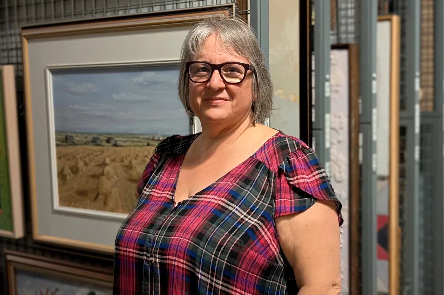 Belinda Harrow is a consultant with SK Arts, and says choosing which pieces would be showcased at the legislative building was a big endeavour. (Lisa Schick/980 CJME)