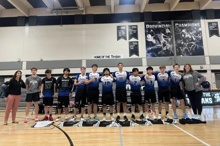 The Thom Trojans players wore Scott jerseys to recognize three Scott athletes who joined their team after Scott was unable to form its own senior boys team, sending a clear message of inclusivity.
